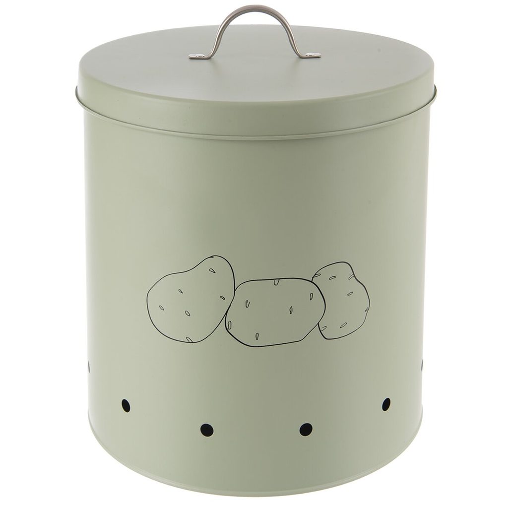 Dóza s víčkem na uložení brambor je vhodná pro domácnosti bez spíže či sklepa. Díky stylovému designu mohou být brambory skladovány přímo v kuchyni na viditelném místě a vytvoří pěknou dekoraci. Zároveň plní praktický účel uchování potravin. Ventilační otvory zajišťují cirkulaci vzduchu, zamezují hromadění vlhkosti a tepla a tím zabraňují klíčení, vzniku plísní a zajišťují delší trvanlivost. Materiál: plech. Rozměry: pr. 22,5 cm, v. 27 cm. Není vhodná do myčky, dózu lze rychle a jednoduše vyčistit vlhkým hadříkem.