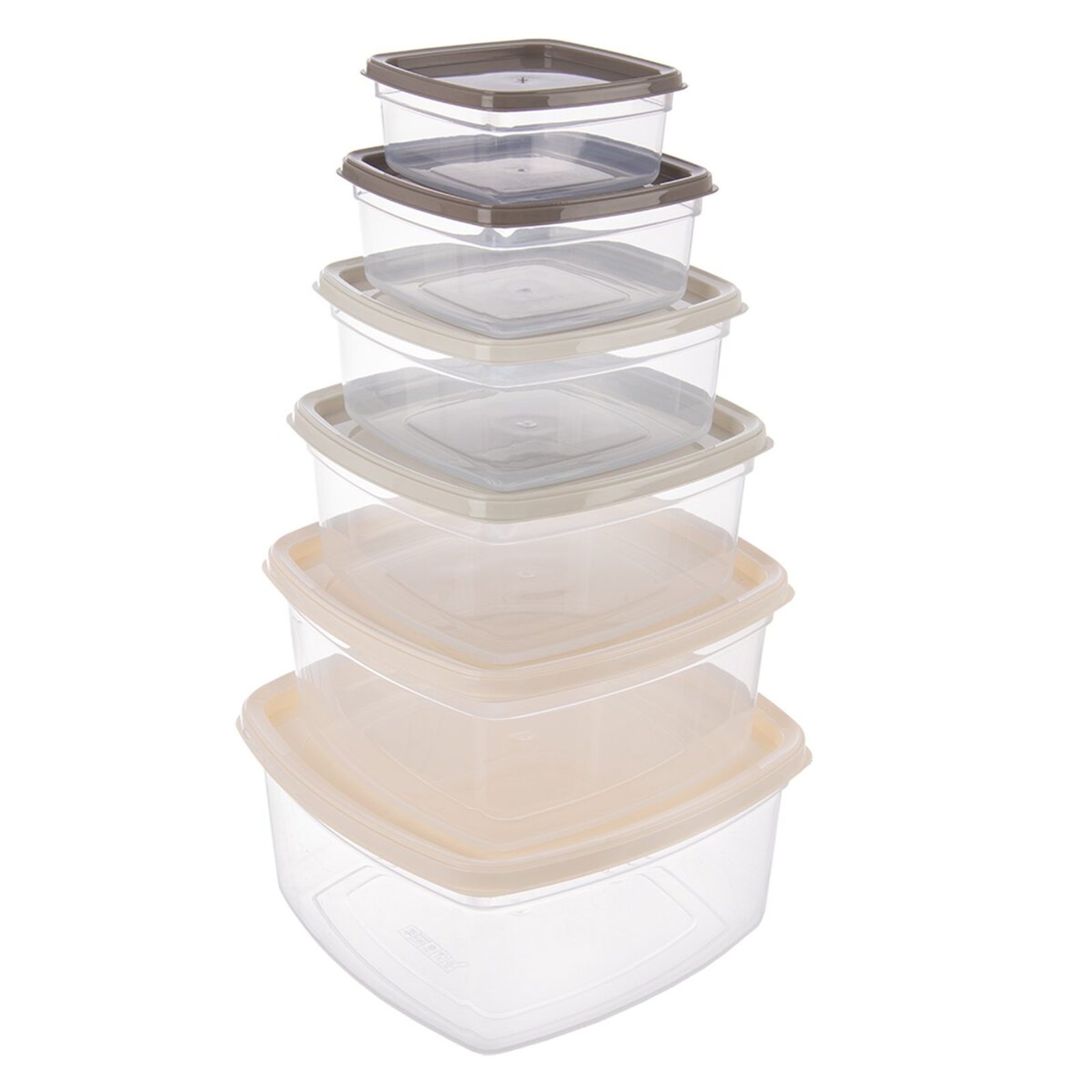 Sada plastových čtvercových dóz různých objemů je praktickým pomocníkem pro uchovávání a organizaci potravin. Obsahuje šest dóz o objemech 0,275/0,5/0,85/1,35/2,1/3,2 l, což umožňuje skladování široké škály surovin – od malých porcí až po větší množství. Díky chytrému řešení lze všechny menší dózy vložit do té největší, což výrazně šetří místo při uskladnění. Mix barevných víček usnadňuje rozlišení jednotlivých dóz podle obsahu nebo účelu použití. Dózy jsou vhodné pro použití v teplotním rozmezí od -25 do +95 °C, takže je možné je používat v mrazáku i ohřívat (bez víčka) v mikrovlnné troubě. Jsou také vhodné pro mytí v myčce, což usnadňuje jejich údržbu. Materiál: plast PP. Neobsahuje BPA. Rozměry: 21x21x10 cm, 18,5x18,5x9 cm, 16,5x16,5x7,5 cm, 14x14x6,5 cm, 12x12x5,5 cm, 10x10x4,5 cm.