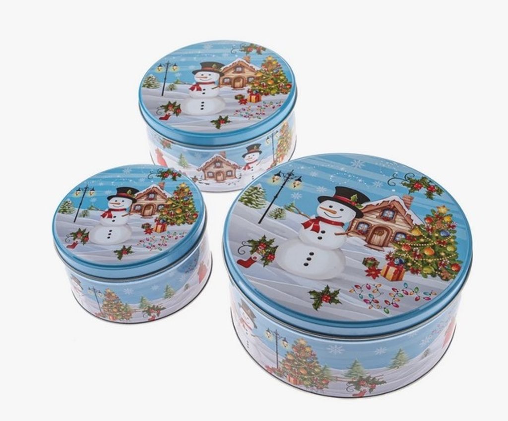 - dóza plech. 3ks sada kulatá SNĚHULÁK MODRÁ, d19,5x9cm