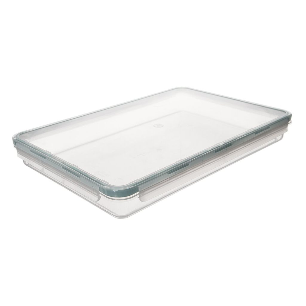 Transparentní dózu s víkem na pevné klipy skvěle využijete na uspořádání potravin v chladničce i mrazničce. Ideálně uloží například sýry a uzeniny. Díky nízkému profilu zajistí praktické využití prostoru. Díky těsnění se lépe uchová chuť potravin a vydrží déle čerstvé. Použít ji můžete i kdekoli jinde v domácnosti k uložení různých drobností (korálky, potřeby k šití nebo vyšívání, kutilové k uložení částí modelů, drobných náhradních dílů...). Materiál: plast PP, silikonové těsnění. Použití při teplotě od -20 °C do +100 °C. Rozměry: 33x22x4,2 cm, o. 1,68 l. Vhodná do myčky i do MVT (bez víčka).