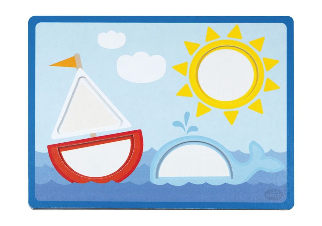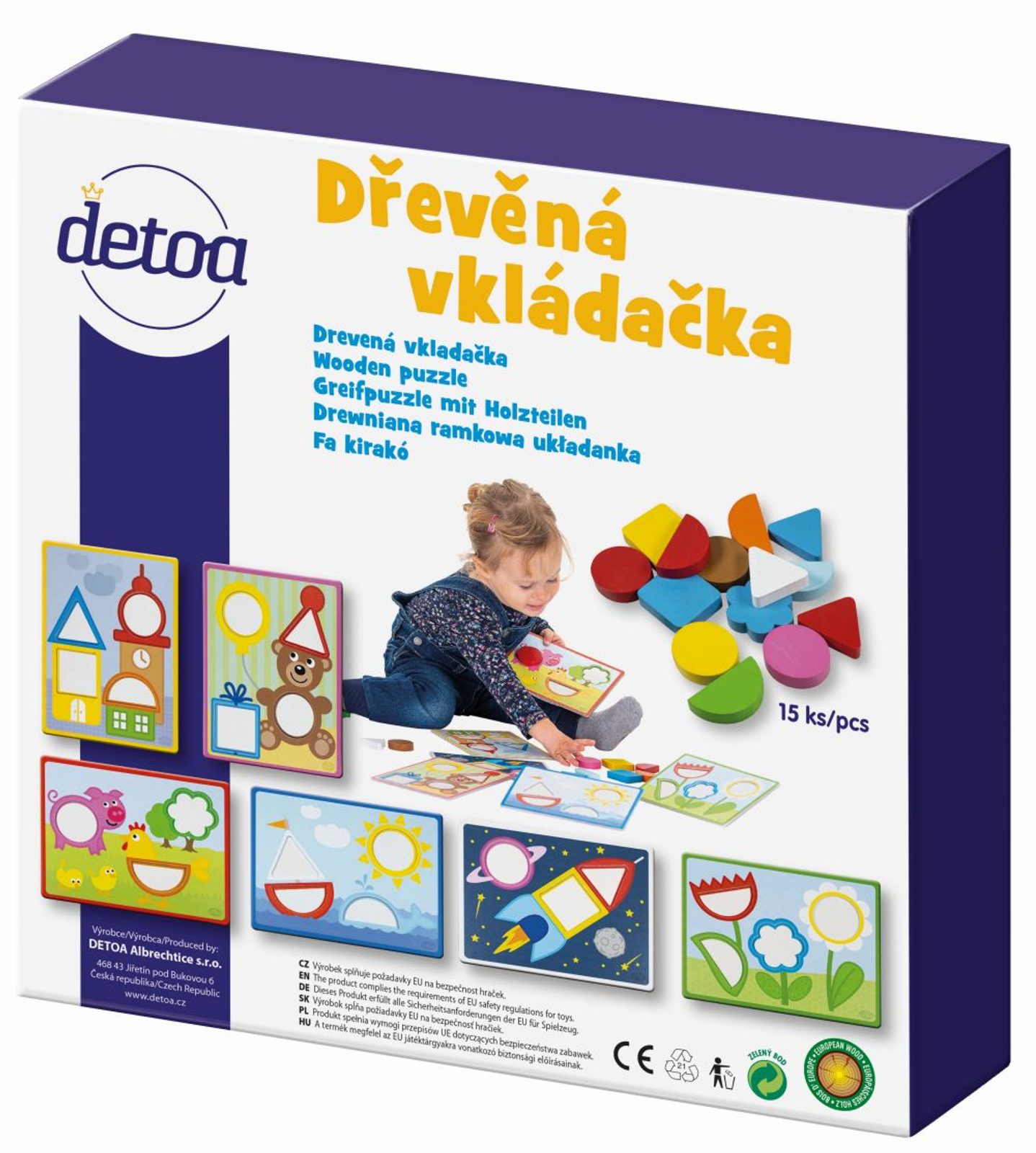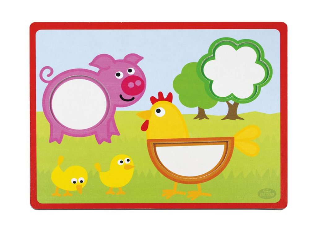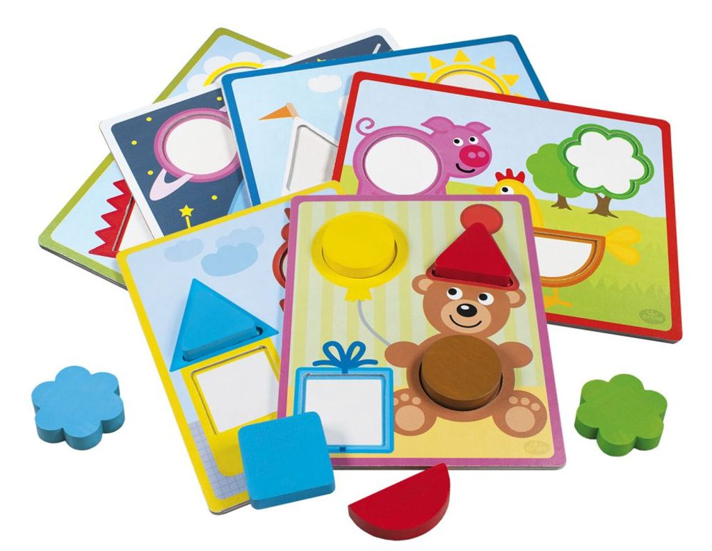 Dřevěné dílky různých tvarů a barev trénují jemnou motoriku ruky dítěte. Nenásilnou formou učí rozeznávat barvy a jednoduché geometrické tvary. Balení obsahuje 15ks dřevěných dílků a 6 papírových předloh.