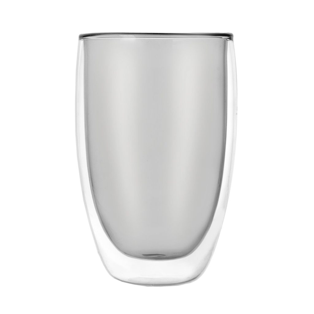 Dvoustěnné sklenice v moderním designu by neměly chybět ani ve vaší domácnosti. Dvojité borosilikátové sklo udrží dlouho teplotu nápoje, takže ranní káva jen tak nevychladne a osvěžující nápoje v letním horku zůstanou déle chladné. Výhodou je také odolnost vůči vysokým a nízkým teplotám, poškrábání, prasklinám i chemikáliím. Jsou odolnější proti tepelné deformaci než běžné sklo. Mytí v myčce nedoporučujeme, mohlo by dojít k proniknutí vody mezi stěny. Tato velikost sklenice se skvěle hodí na latte i jiné druhy kávy, na čaj, horkou čokoládu, ovocné limonády, minerálku... Sada 2 ks. Materiál: borosilikátové sklo – použití od -10 °C do +210 °C. Rozměry: o. 500 ml, pr. 8,5 cm, v. 14 cm.