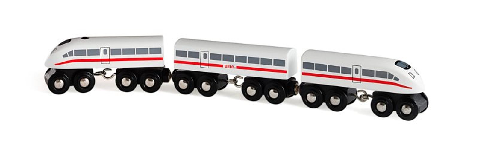 Všichni pozor, rychlovlak projíždí! Tento model kombinuje funkčnost, podstatu tradičních BRIO vláčků s přednostmi moderního, rychlého vozidla. Sada obsahuje třídilný vlak, který vydává po znáčknutí tlačítka na lokomotivě zvuk. Baterie jsou součástí balení. Rozměr hračky: 357 x 34 x 48 mm Rozměr balení: 270 x 50 x 150 Věk: 3+