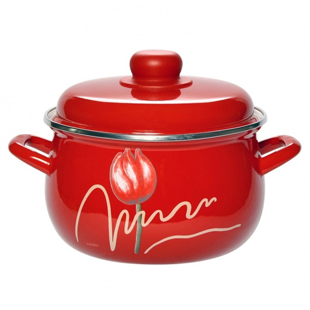 Smaltovaný hrnec s poklicí, dekor tulipán je vhodný ke každodennímu využití v každé domácnosti, je snadno omyvatelný. Vhodný na všechny druhy sporáků a lze ho umvat v myčce.