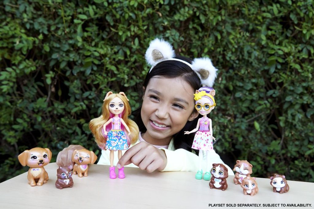 Seznam se s Enchantimals™, roztomilými bytůstkami, které spojuje výjimečný vztah s jejich nejlepšími kamarády zvířátky. V těchto herních setech z kolekce Krásnovršky na tebe čekají rozkošné rodinky Enchantimals™. V každém setu najdeš 15 centimetrovou panenku a 3 nebo 4 zvířecí kamarády. Panenky Enchantimals™ jsou oblečeny do odnímatelných sukýnek, botek a nechybí ani nejrůznější doplňky. Jakmile tyto panenky spatříš, ihned si zamiluješ jejich osobitý styl a překrásné dlouhé vlasy. Zvířecí kamarádi se stejně jako panenky pyšní unikátními rysy. Malé holčičky si zamilují budování výjimečného vztahu se svými přáteli a oslavování světa, kde se všichni starají jeden o druhého s láskou. Sesbírej je všechny a postav si svůj svět Enchantimals™.