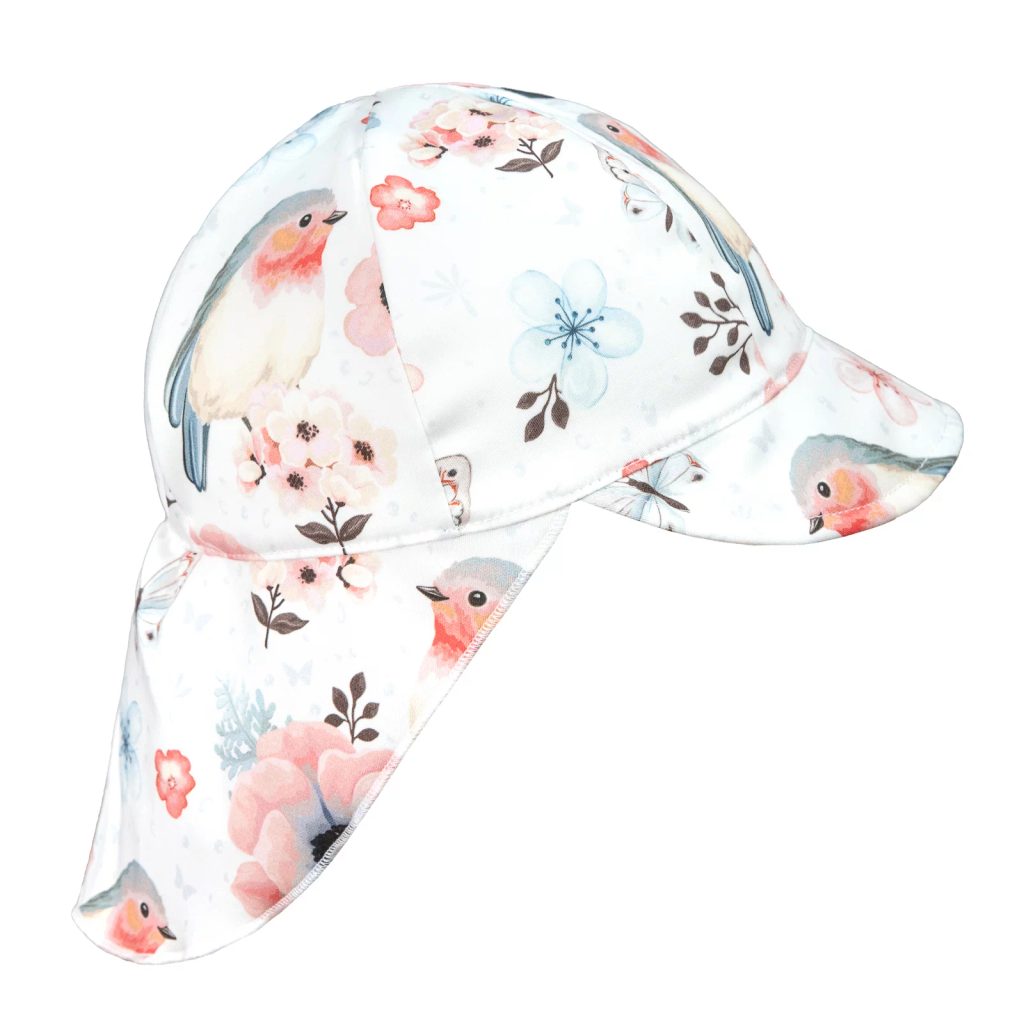 Dětská kšiltovka s krytím krku Ptáčci z příjemné saténové velmi jemné bavlny v růžové barvě. V zadní části kšiltovky je všita guma k lepšímu přizpůsobení čepice na hlavě. Skvělý střih dětské letní kšiltovky, která padne jako ulitá.