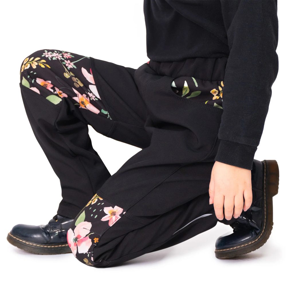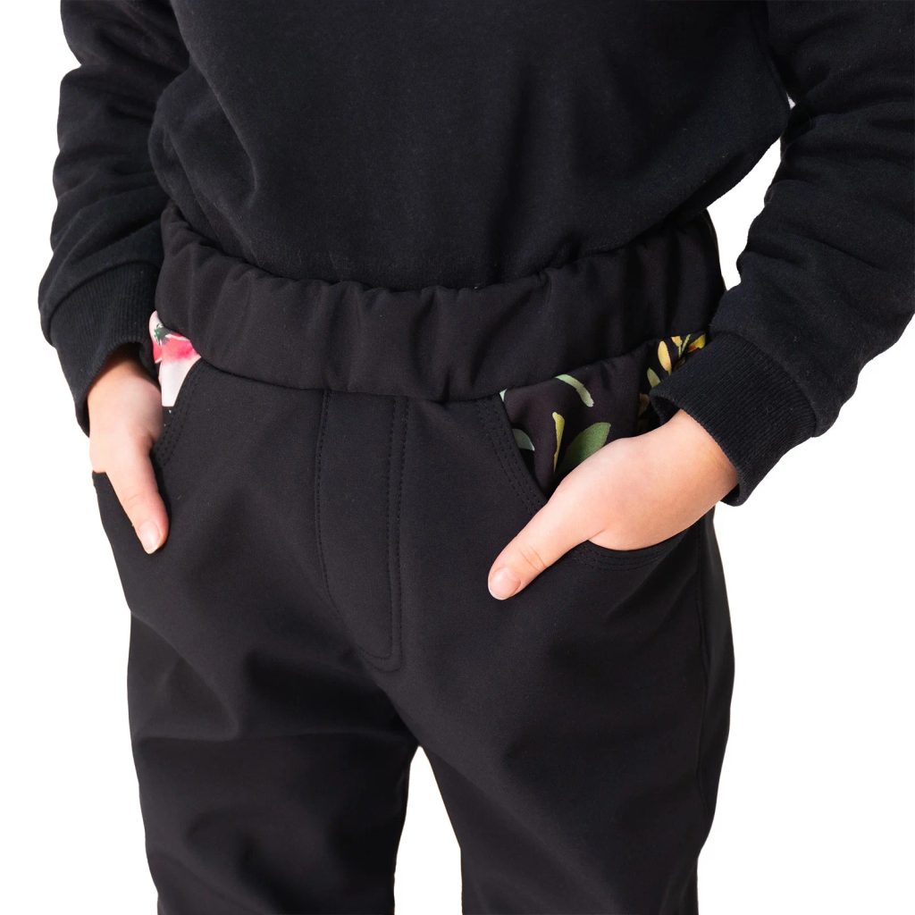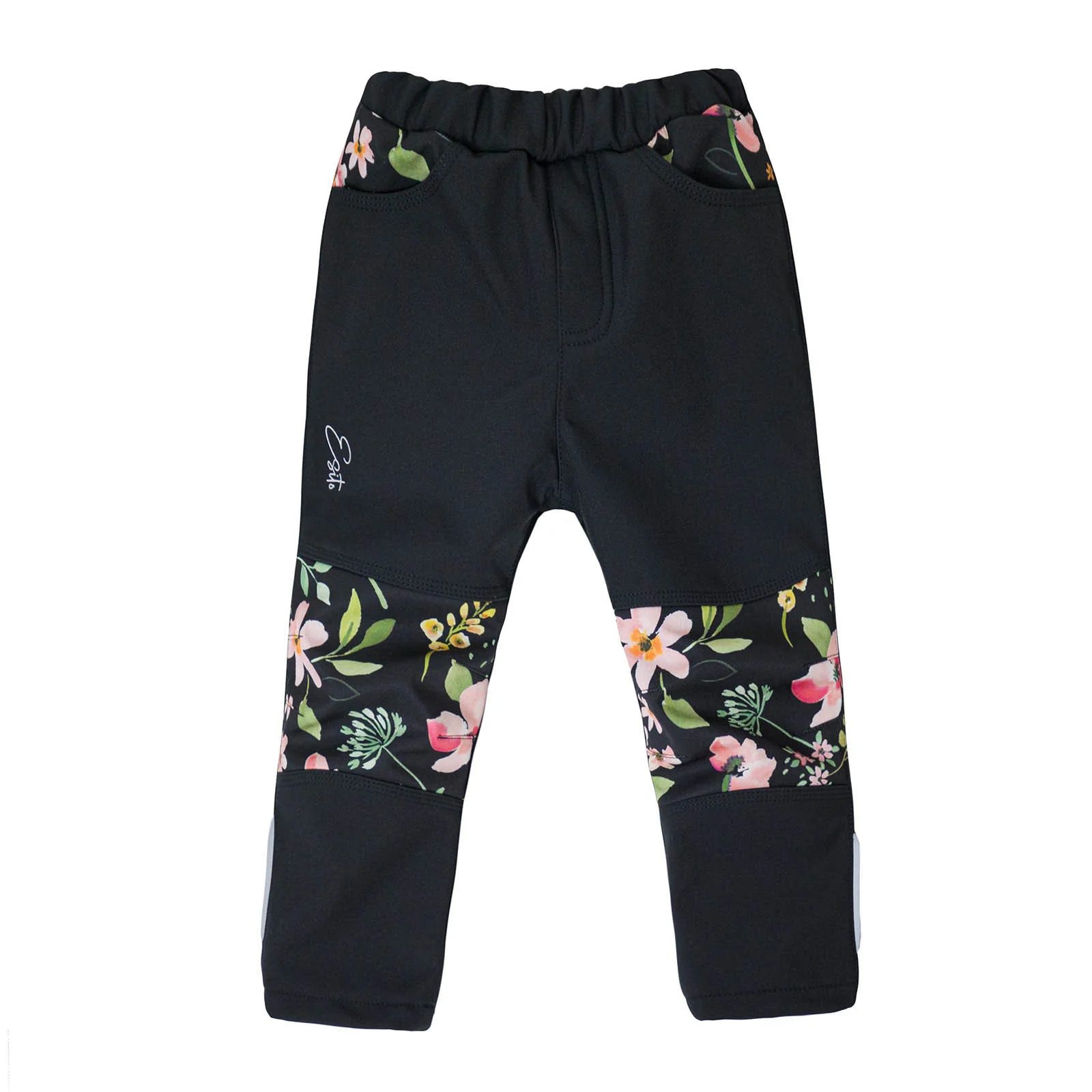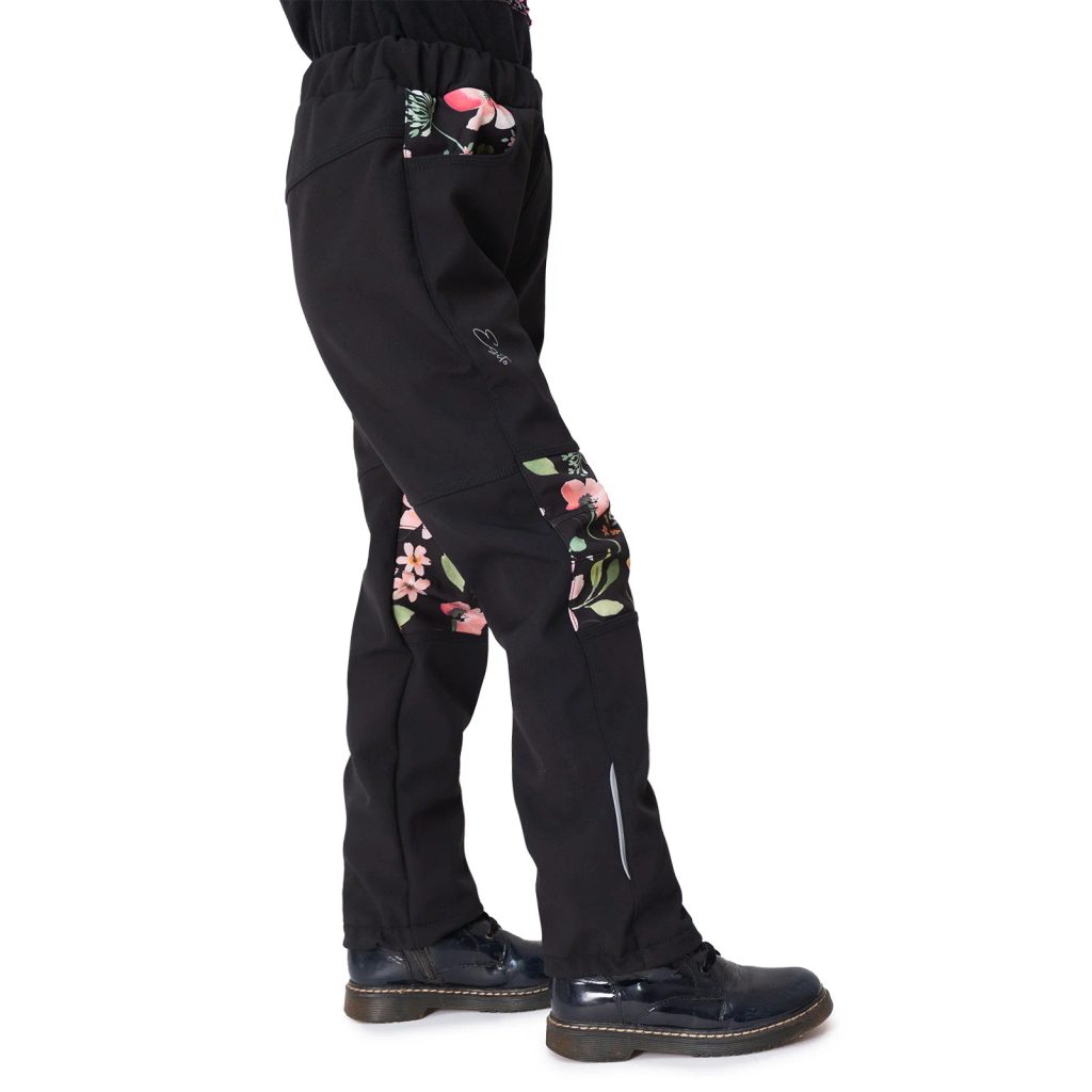 ESITO Dětské softshellové kalhoty DUO Spring flowers - černá