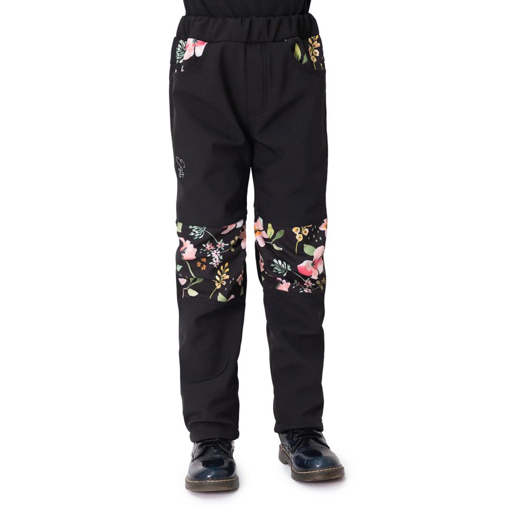 ESITO Dětské softshellové kalhoty DUO Spring flowers - černá