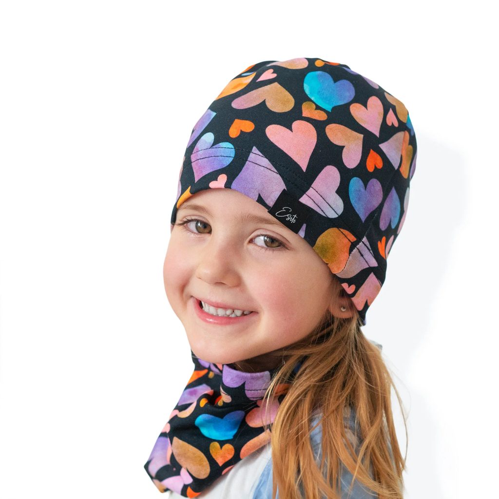 ESITO Jarní čepice Barevná srdce - černá