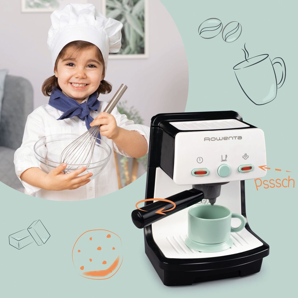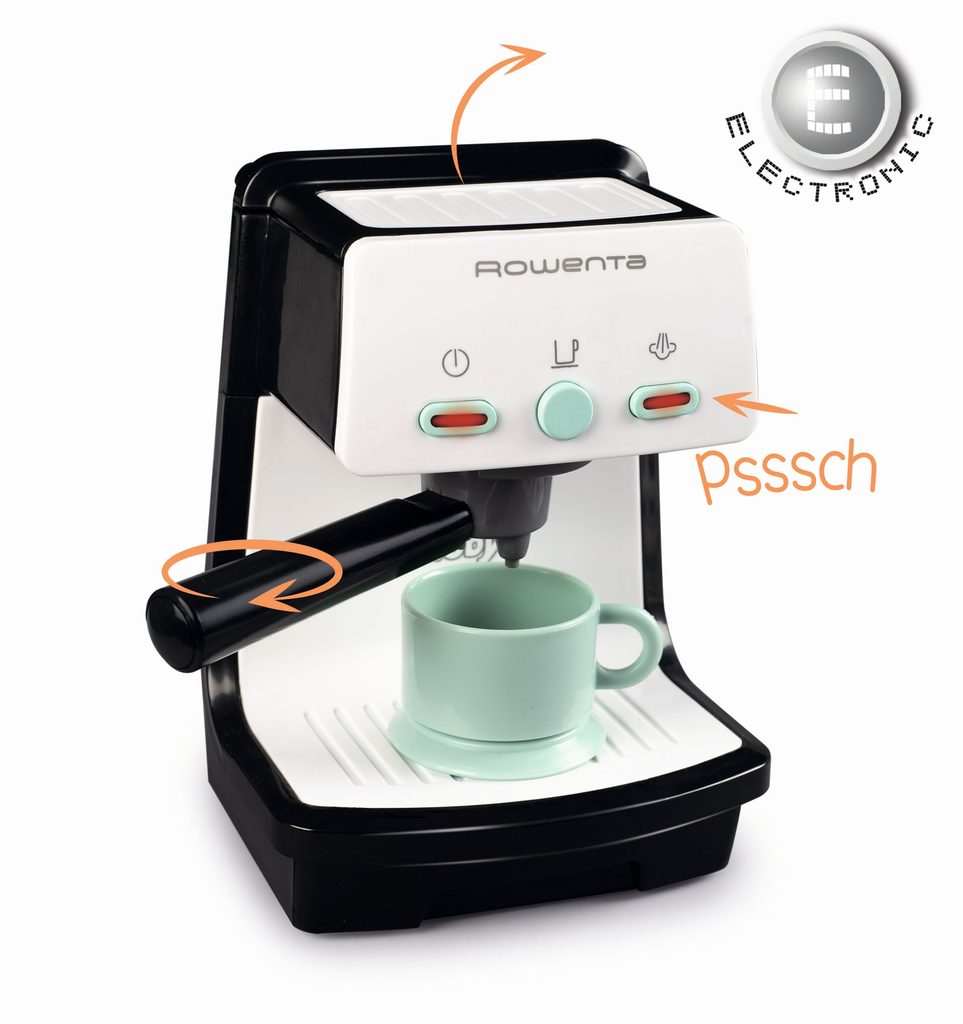 Věrná replika moderního stroje na espresso dodává espresso ve správném stylu. Realistické funkce, jako je podsvícený spínač a různé zvukové efekty, zajišťují skutečný baristický vkus. Portafiltr lze vyjmout jako u skutečného kávovaru na espresso. Součástí je šálek na espresso. Rozměry (DxŠxV): 10,5 x 10,4 x 18 cm.