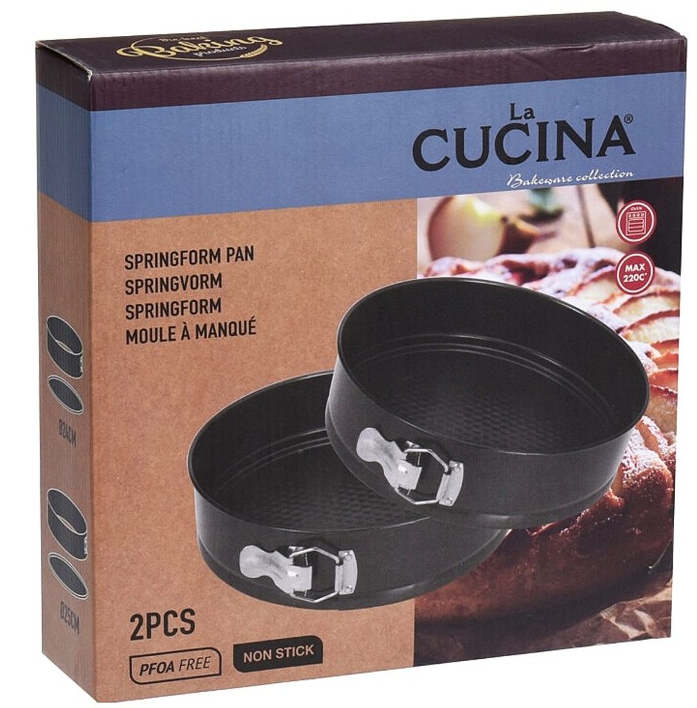 Praktická sada pružinových forem z kvalitního kovu s nepřilnavým povrchem, který zajišťuje snadné vyjmutí těsta a jednoduché čištění. Díky dvěma velikostem máte vždy po ruce ideální formu na přípravu různých druhů moučníků a dezertů.