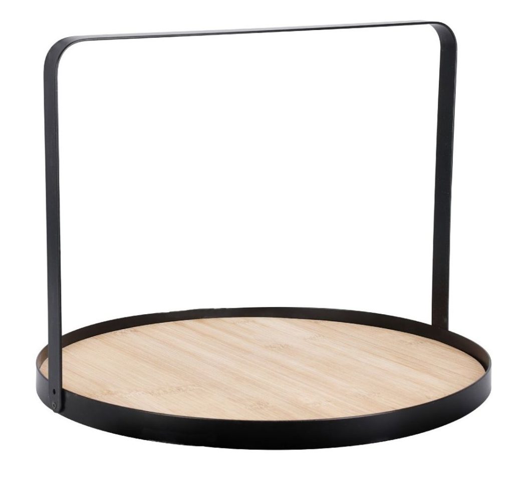 Stylový servírovací podnos vyrobený z kvalitního bambusu s elegantním černým kovovým rámem a držadlem. Ideální pro servírování nápojů nebo jídla s nádechem přírodního designu.