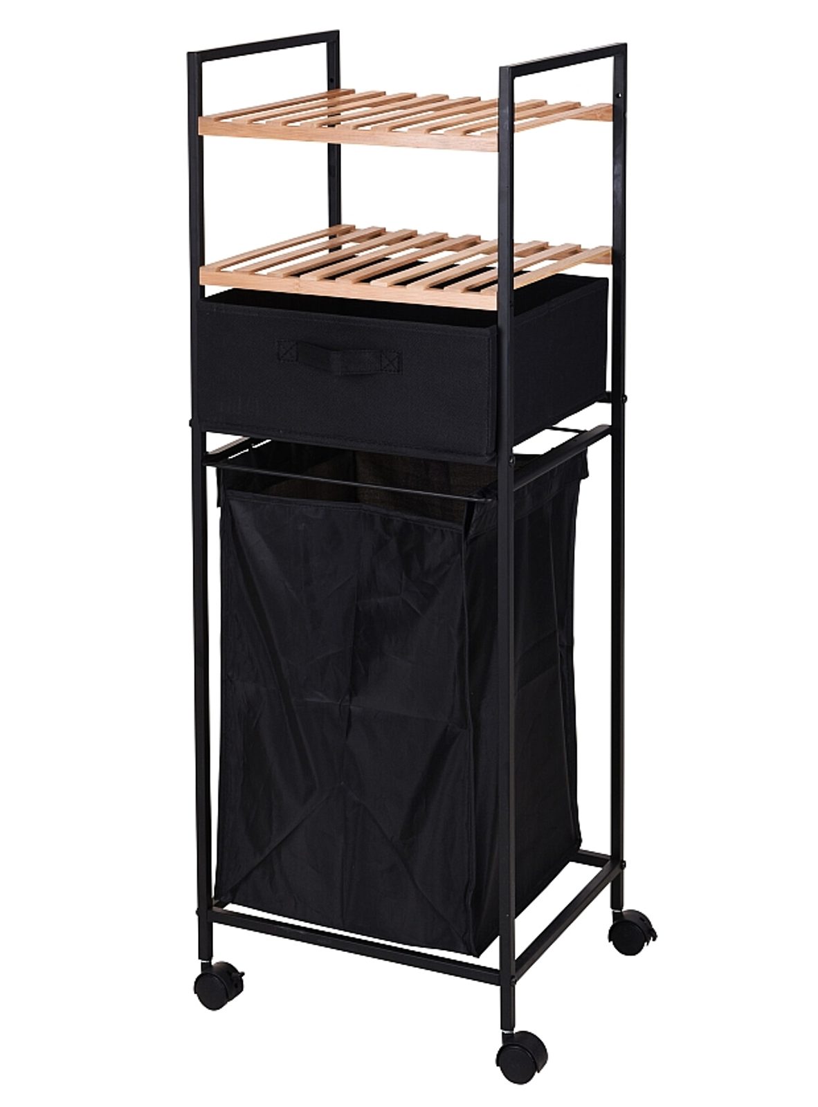 EXCELLENT HOUSEWARE Regál do koupelny s košem na prádlo 3 police dřevo/kov KO-784500080