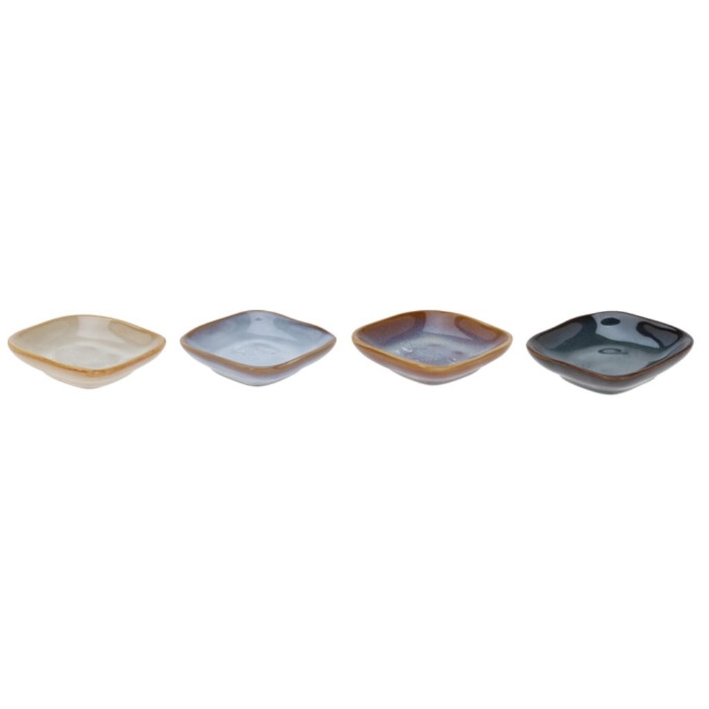 Moderní a barevná sada kameninových misek, ideální pro servírování snacků, pochutin nebo dipů. Každá miska je jedinečná díky reaktivní glazuře v trendy barvách.