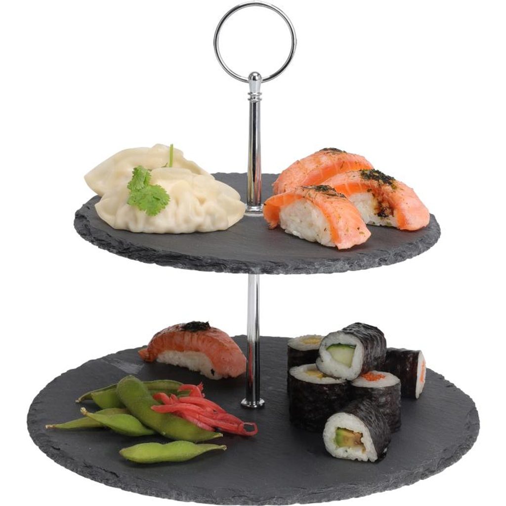 Servírovací stojan na jídlo 2 patra – břidlicový s chromovanou úchytkou