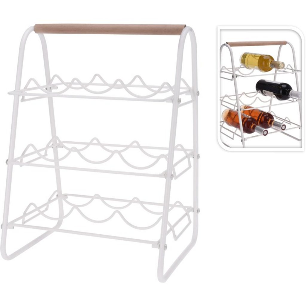 EXCELLENT HOUSEWARE Stojan na víno kovový 9 lahví KO-HZ1915470 - praktický stojan na lahve vyrobený z kovu a dřeva- bílý práškový nástřik zajistí dlouhou životnost- díky nástřiku stojan nezreziví- pro uskladnění až 9-ti lahví- jednoduché přemisťování díky horní dřevěné rukojeti- rozměry: 33 x 29 x výška 46 cm