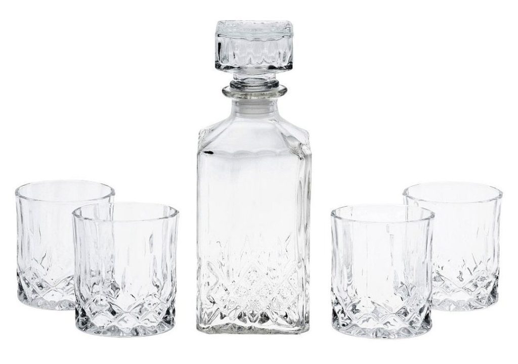 Stylový set pro servírování whiskey a koktejlů – dekantér a 4 sklenice, 0,9 l