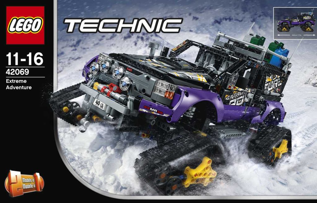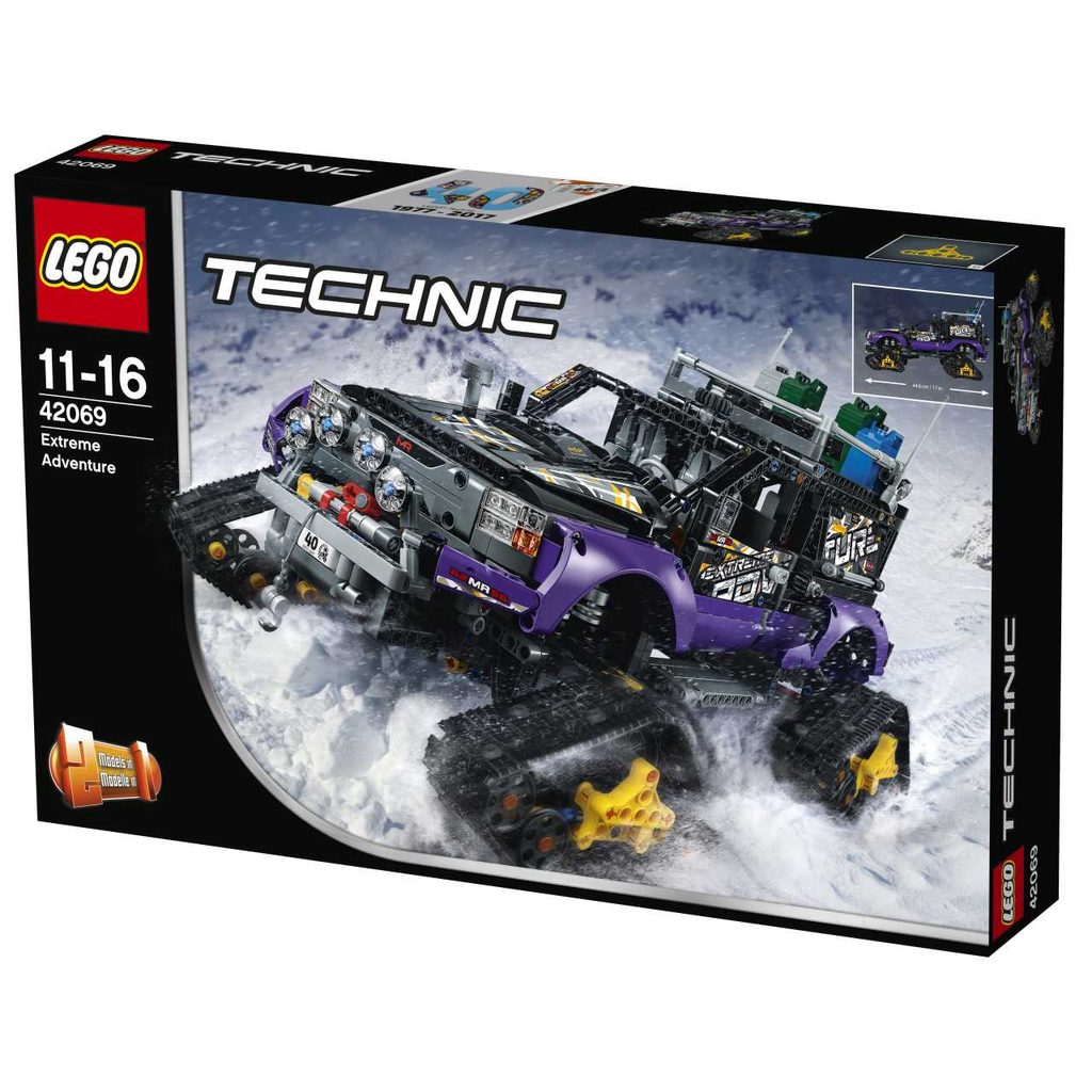 Zažij vzrušující výpravy s terénním Vozidlem Extreme Adventure. Součástí jsou čtyři nezávislé terénní pásy, fungující odpružení, opravdový naviják, přední řízení a celá řada dalších zajímavých funkcí. Otevři dveře a pozoruj pohyb stupačky až do spodní polohy, otoč klikou a zvedni tím integrovaný střešní stan, odemkni dveře zavazadlového prostoru a zpřístupni posuvný úložný šuplík s lopatou nebo zvedni kapotu a odhal silný motor V8 s pohyblivými písty. Tento působivý model 2 v 1 od LEGO Technic dále obsahuje boční otevírací schránku s autolékárničkou a dvěma hasicími přístroji, střešní nosič se dvěma tmavě zelenými kanystry na naftu a žluté, černé a fialové barevné motivy s ozdobnými nálepkami. Přestav tento model a vytvoř Mobilní vozidlo!