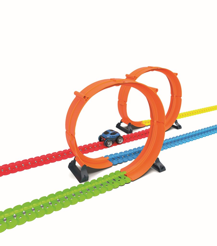 Se sadou superlooping lze ideálně doplnit stávající závodní dráhu FleXtreme.Vytvářejte působivé a originální smyčky, které lze instalovat samostatně na dvě různá místa okruhu Flextreme nebo je sestavit dohromady a vytvořit tak řetězec smyček. Superloops lze instalovat svisle nebo vodorovně a řídit auto do strany. Je také možné rozšířit Superloops přidáním kolejnic mezi dvě části smyčky. Rozměry (DxŠxV): 39 x 39 x 36 cm.
