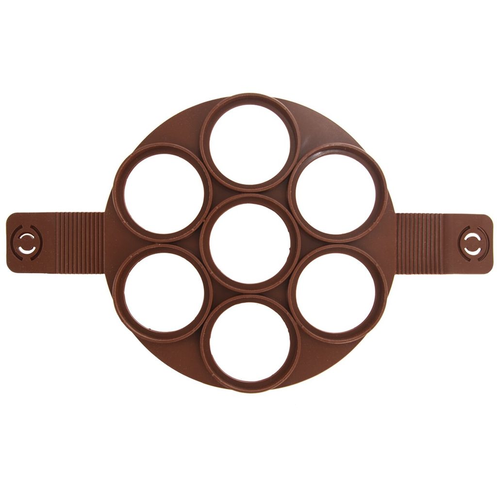 Silikonová forma na 7 lívanečků/volských ok zaručí snadnou a rychlou přípravu těchto pochoutek. Formu položíte na dno pánve a do každého tvořítka nalijete připravené těsto nebo rozklepnete vajíčko. Materiál: silikon. Odolává teplotám od -40 °C do +220 °C. Rozměry: pr. 24 cm, pr. tvořítka 6,5/7,5 cm, v. 1,1 cm. Vhodná do myčky, klasické trouby i MVT.
