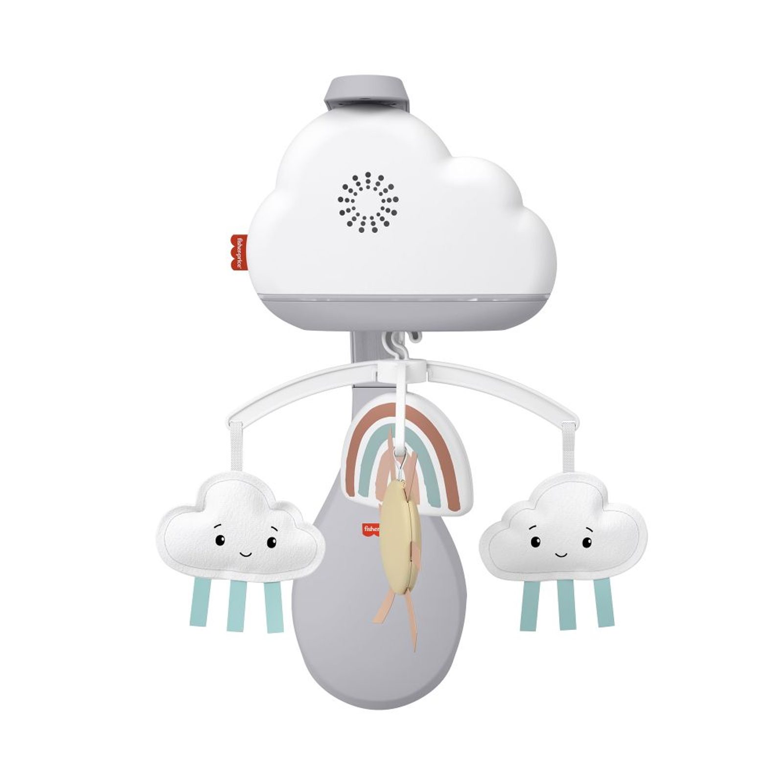 Fisher-Price® Kolotoč nad postýlku déšť s duhou má oslnivé závěsné hračky v podobě obláčků a sluníček a obsahuje 20minutovou melodii, která pomůže vašemu novorozenci uvolnit se a usnout. Praktický snímač pláče automaticky spustí uklidňující hudbu a kolotoč, když děťátko vydá zvuk! A když děti povyrostou, odejměte obláček z kolotoče a vytvořte z něj uspávací hračku na noční stolek. Vhodné pro většinu dětských postýlek, kolébek a přenosných ohrádek. Není určeno pro použití na ohrádky se stříškou nebo postýlky se stříškou. Určené na použití na postýlky od narození do 5 měsíců a na noční stolek od 5 měsíců.