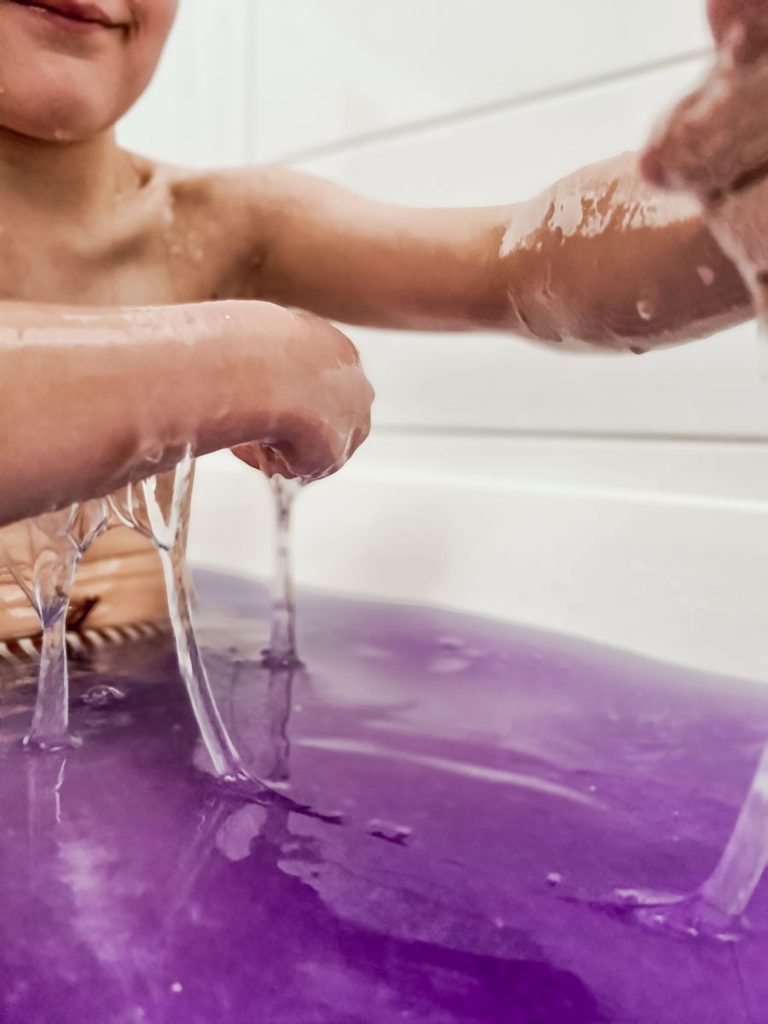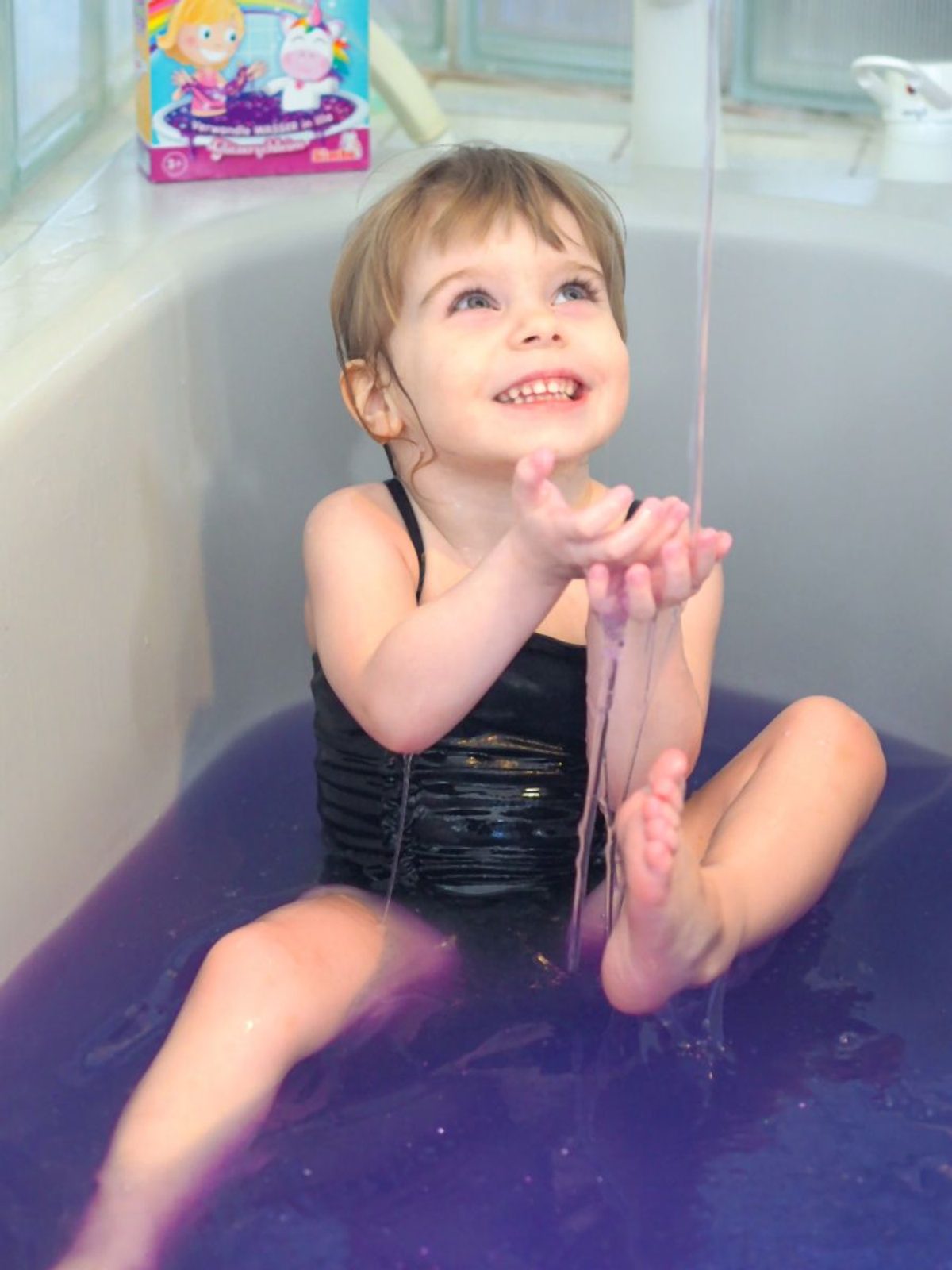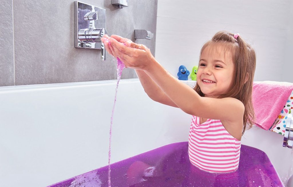 Prášek Glibbi přemění vodu do fialového třpytivého slizu a zábavné koupání může začít, poté stačí jen doplnit vodu a vytáhnout špunt. Displej obsahuje 10 ks. V balení 150 g prášku Glibbi.