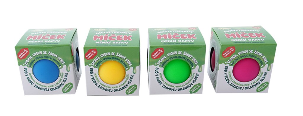 Jsi ve stresu? Antistresový míček tě ho pomůže zbavit. Lehce mačkatelný barevní míček, který po stlačení mění svouji barvu. Vyber si barvu, která se ti líbí.