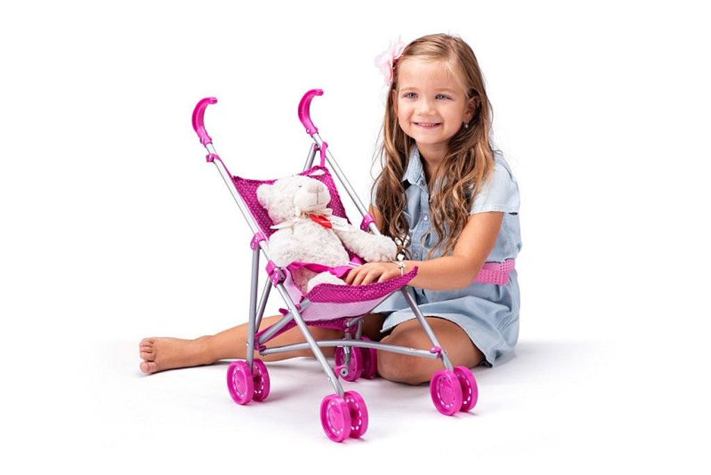 Design kočárku s jednorožcem reaguje na aktuální módní trend. Jednorožce holčičky prostě milují! Golfky jsou vyrobeny z kombinace materiálů: látka, kov a plast. Velmi jednoduchý mechanismus umožňuje skládání a opětné rozkládání golfek. Tato hračka je doporučena pro holčičky, které si rády hrají a vžívají se do role dospělých maminek. Hra podporuje představivost, rozvíjí sociální cítění, pamět a hrubou motoriku. | Velikost složeného výrobku je: délka 48 x hloubka 25 x výška 57 cm | Věk: 3+