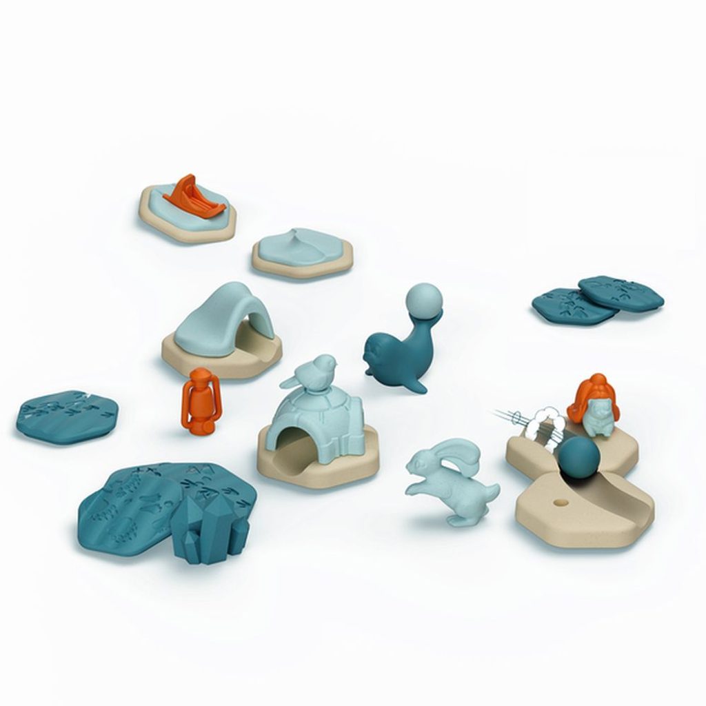 GraviTrax Junior je interaktivní systém kuličkové dráhy pro děti od 3 let. Ti nejmenší si staví své vlastní světy z kuličkových drah, které lze podle libosti zdobit a vytvářet tak jednotlivé tematické světy. Děti si tak při kreativním stavění užijí mnoho zábavy. Rozšíření Ledový svět obsahuje různé dekorační prvky a figurky zvířátek a rostlin ze světa plného ledu. Děti si tak sami mohou v rámci GraviTrax dráhy prozkoumat toto prostředí a začít dobrodružství na sněhu. Všechny stavební a dekorační součásti jsou vyrobeny z dřevěného bioplastu. Rozšíření obsahuje 34 stavebních a dekoračních prvků.