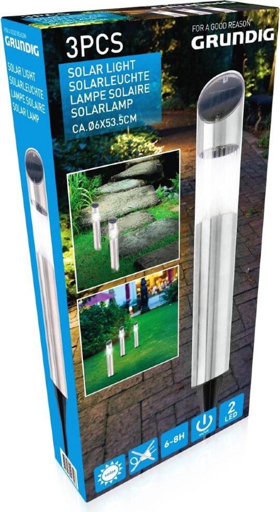 GRUNDIG Solární zahradní osvětlení lampa sada 3 ks nerez 53cm ED-212352