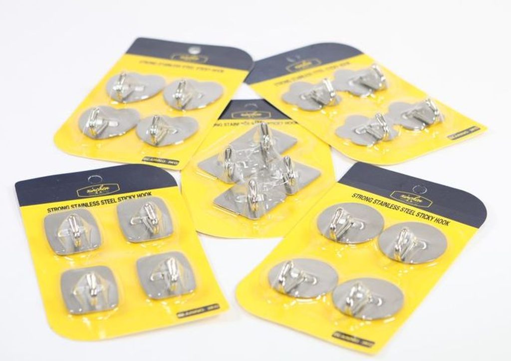- háček- 4ks-různé druhy, výkyv,háček, NR, samolep.