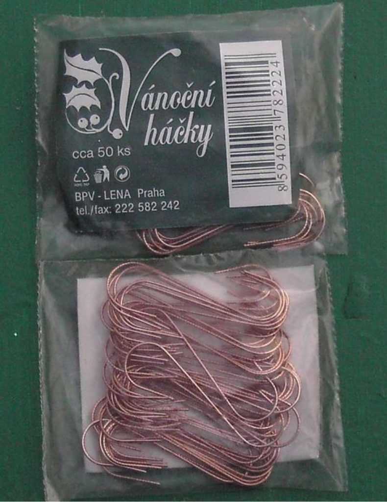 - háček-50ks-dlouhý měděný vánoční /50/
