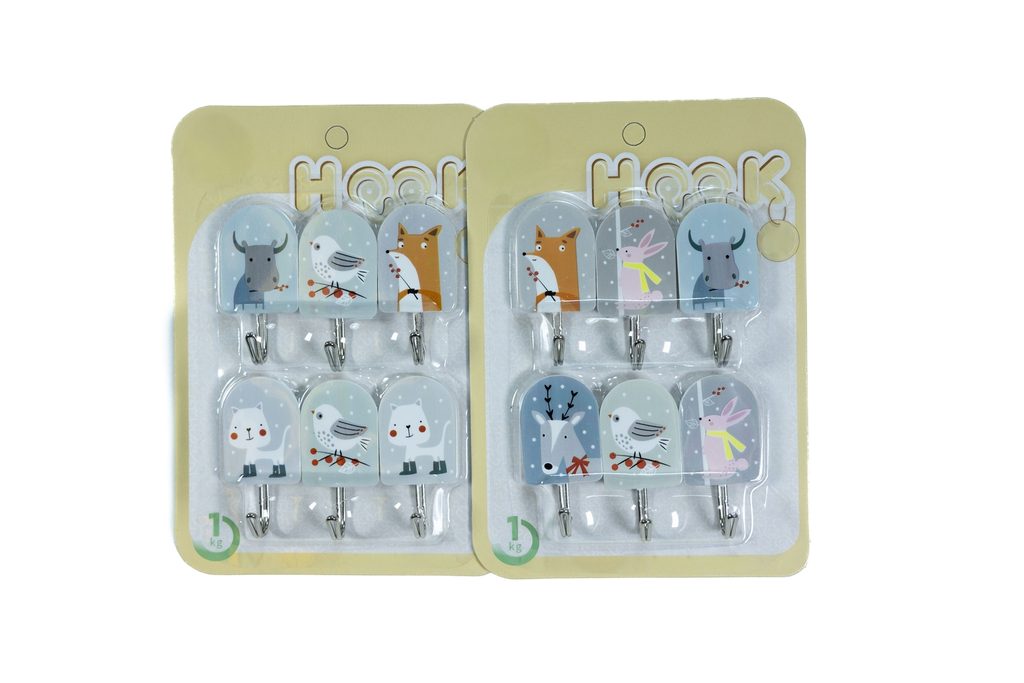 - háček- 6ks-ZVÍŘÁTKA-MIX DEKORŮ, samolep., kov/plast