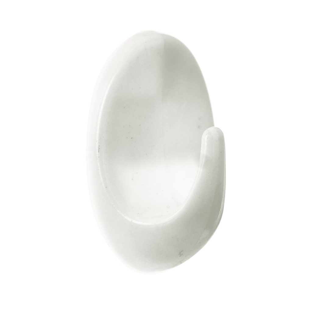 Háček samolepící oválný. Materiál: plast. Barva bílá. Rozměry: 3x5 cm.