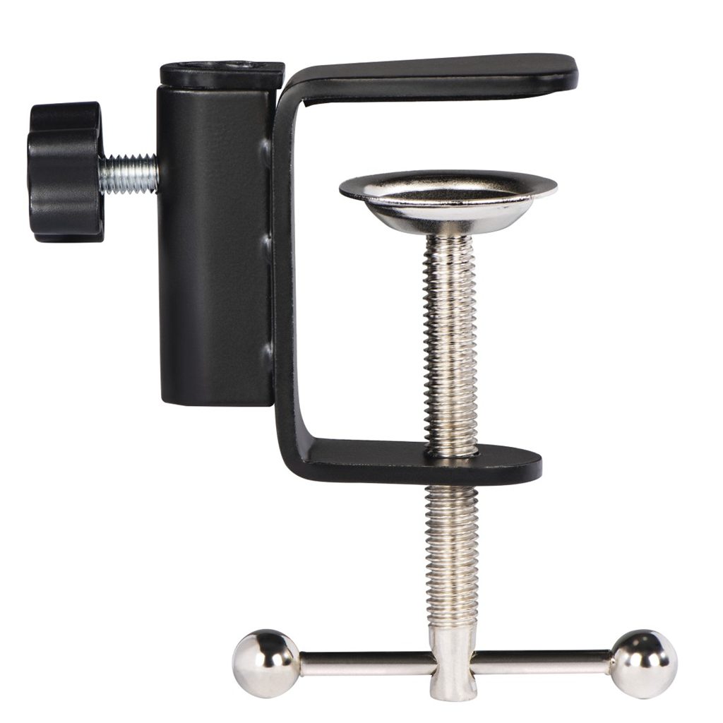 - snadné a bezpečné připevnění ke stolu/polici pomocí nastavitelné šroubové svorky, která je vyrobena z robustního, pevného kovu s filcem, který chrání povrch plochy před poškrábáním