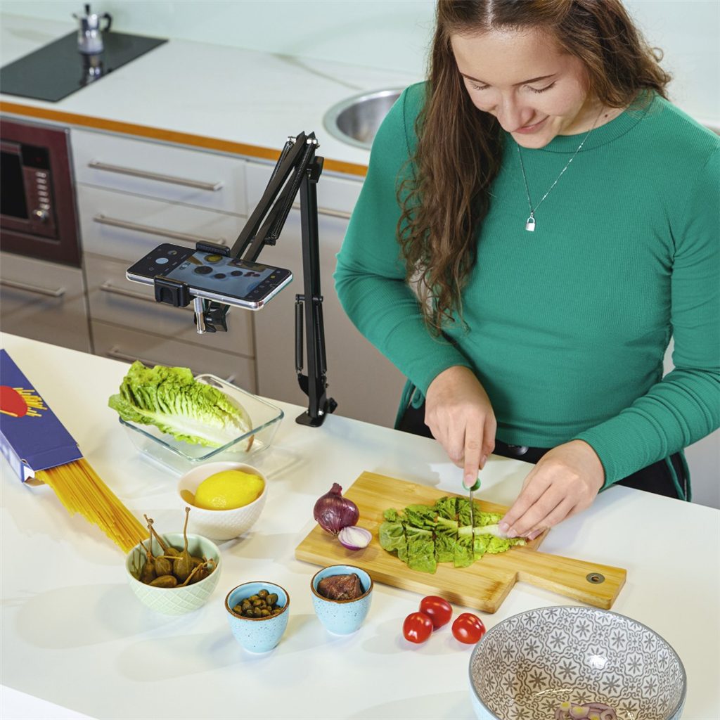 - praktický přenosný držák vhodný pro domov, kancelář, dílnu či kuchyni, influencery, vloggery, bloggery, YouTubery atd.