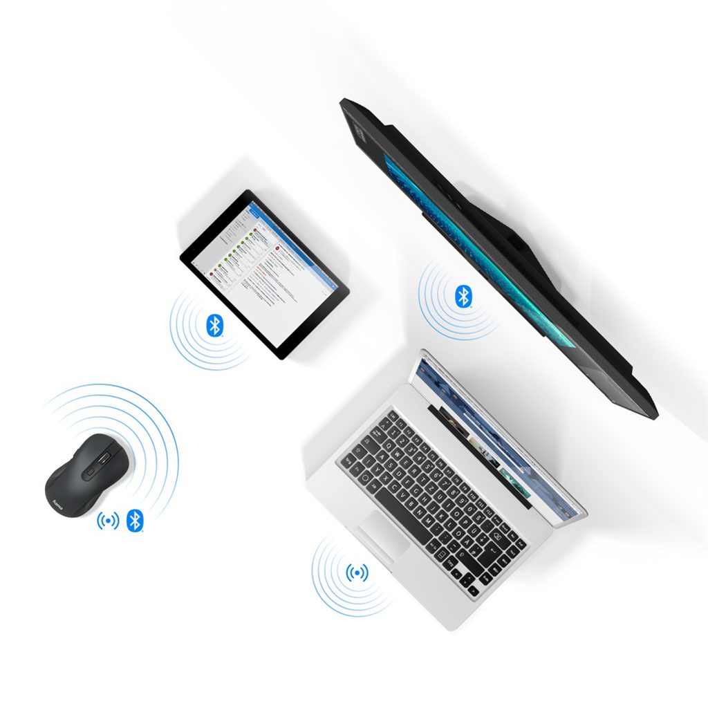 - plná flexibilita stisknutím tlačítka: volba mezi USB-A přijímačem a Bluetooth, s jednou myší ovládáte tři zařízení