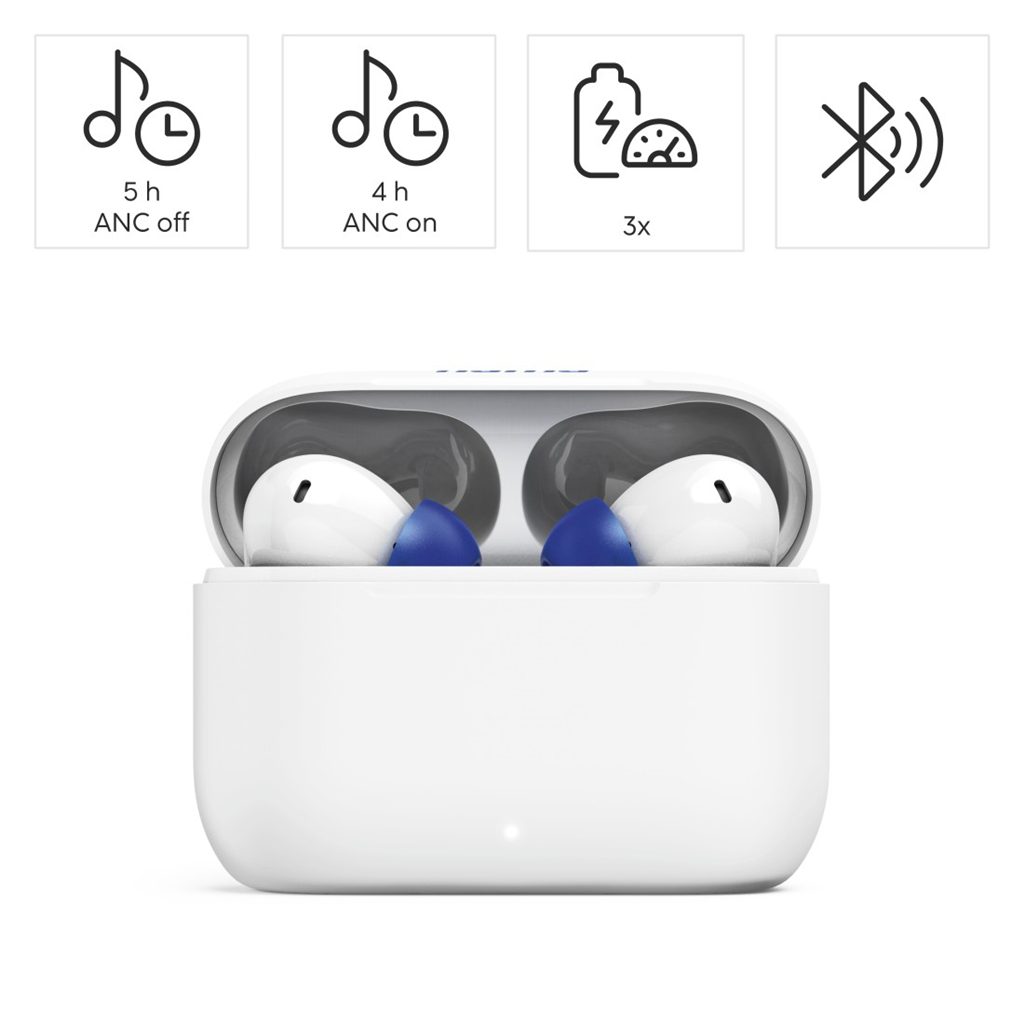 - max. doba přehrávání hudby: 5 h (4 h s ANC) + 15 h (12 h s ANC) pouzdro