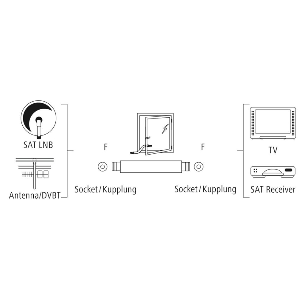 - pro propojení kabelů např. mezi anténou a SAT/TV přijímačem
