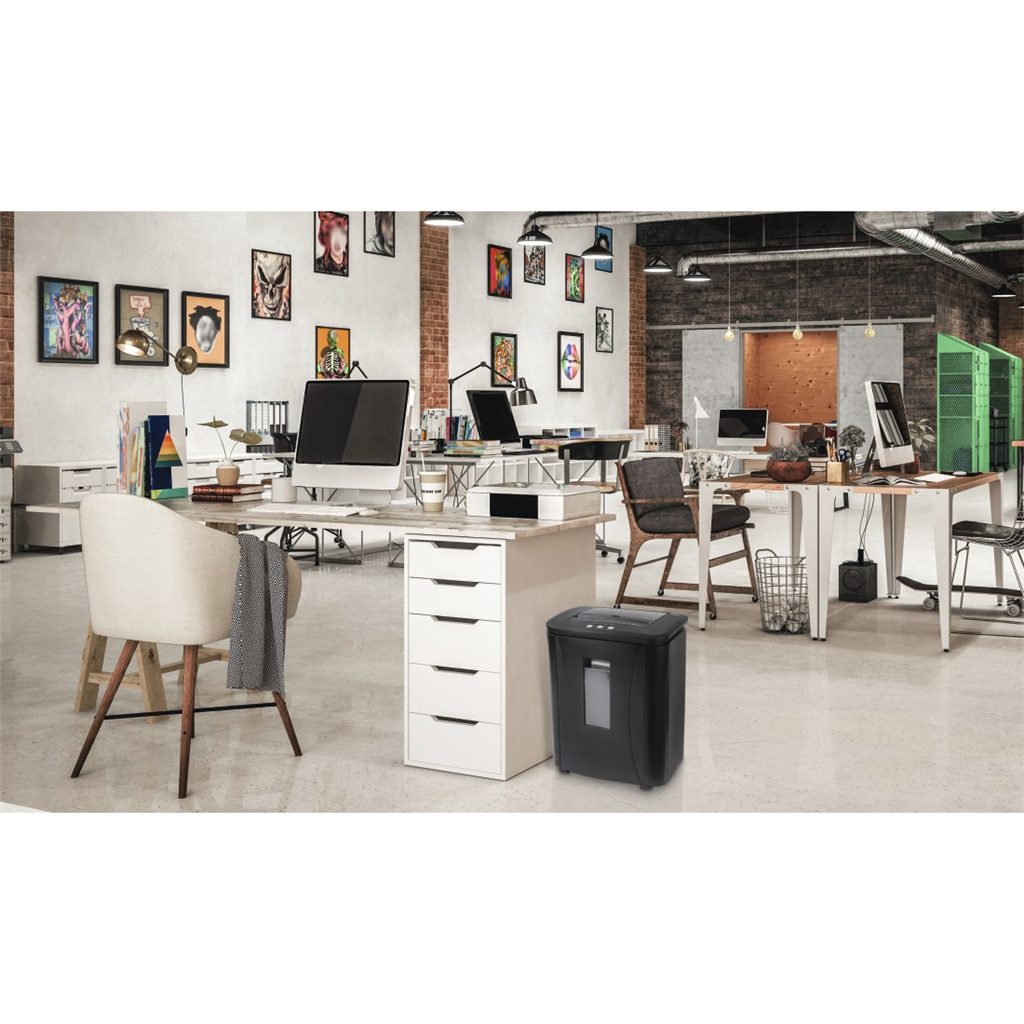 - řezání papíru na mimořádně malé kousky, což maximalizuje kapacitu koše; koš je možné vytáhnout pro snadné vysypání zeskartovaného papíru
