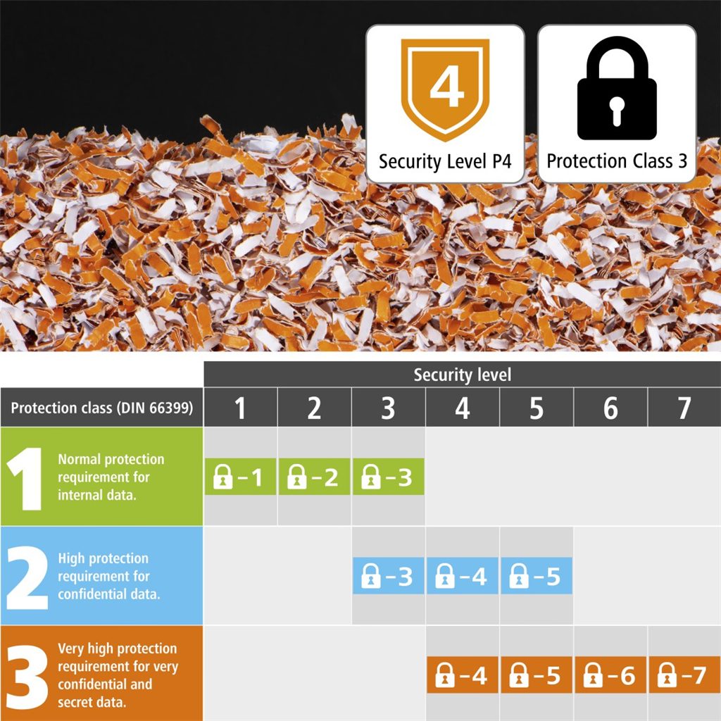 - bezpečnostní úroveň (dle DIN 66399): E-3/P-4/T-4
