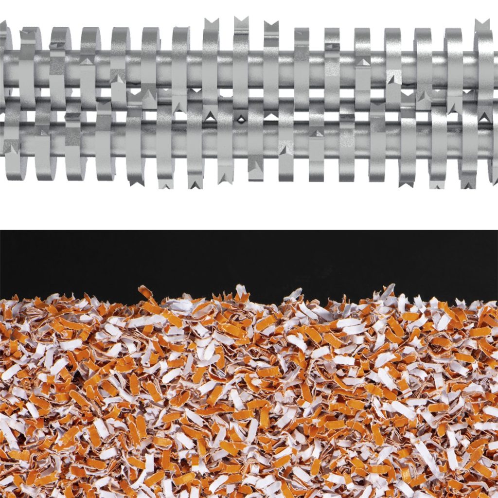 - velikost zeskartovaných kousků (papír/plastové karty): 2x12 mm/křížový micro řez