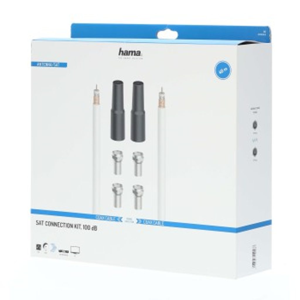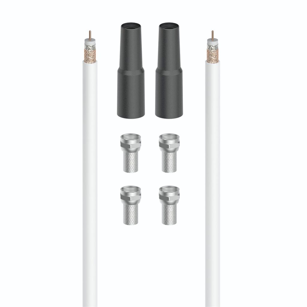 - obsah balení: koaxiální kabel (40 m, bílý), 4x F-konektor, 2x ochranný návlek na konektor