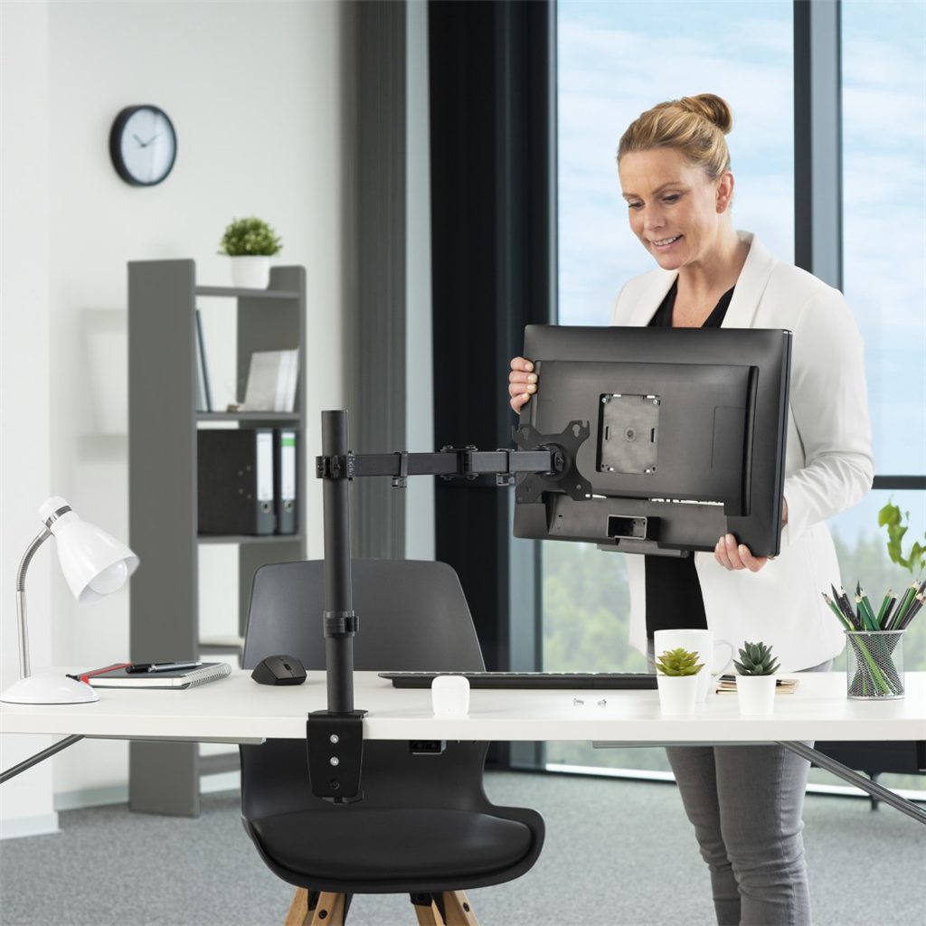 - snadná instalace: samostatný VESA modul se upevní k monitoru a poté jednoduše nasadí na rameno držáku
