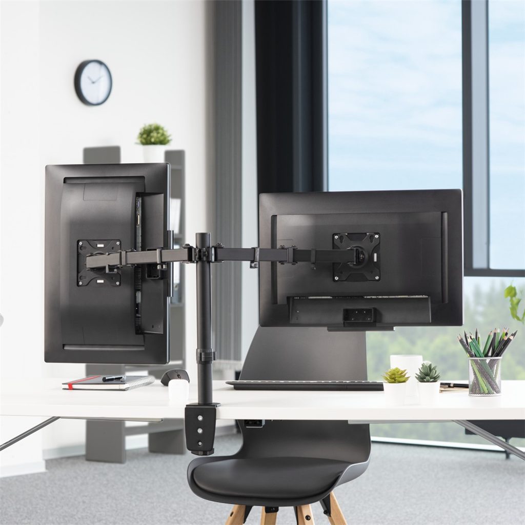 - dvě pohyblivá ramena se třemi klouby umožňují plynule nastavit polohu monitorů ve všech směrech