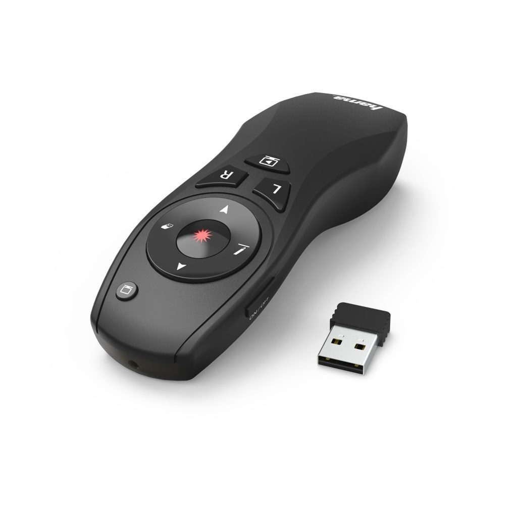 - Air mouse function: turns the presenter into a wireless PC mouse and allows commands with the right and left mouse buttons, as well as control of the mouse pointer