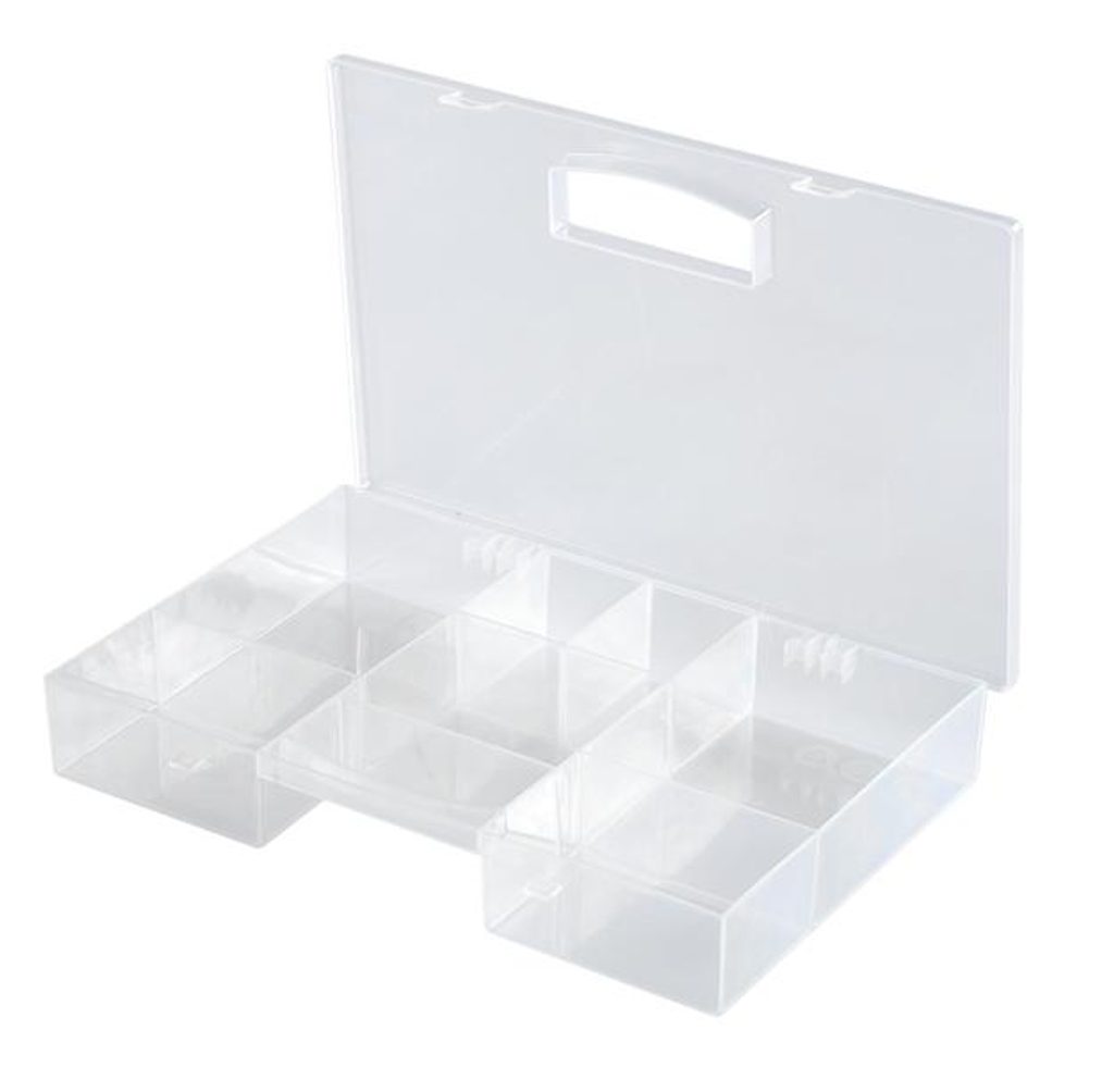 Plastový přenosný organizér HEIDRUN je na drobný materiál. Je vhodný na šroubky, hřebíky, vrtáky a další materiál, který potřebujete mít stále po ruce. Rozměry organizéru jsou 28 x 19,5 x 4 cm.
