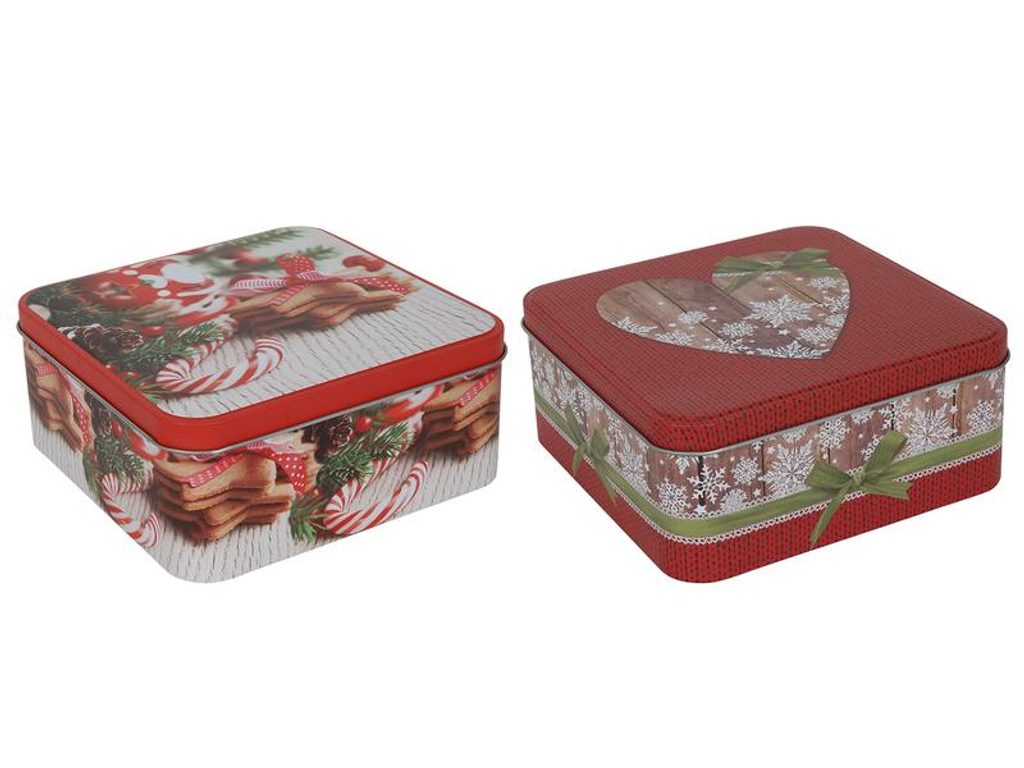 DÓZA NA CUKROVÍ 15,2*15,2*6,7CM VÁNOČNÍ MOTIV 2ASS