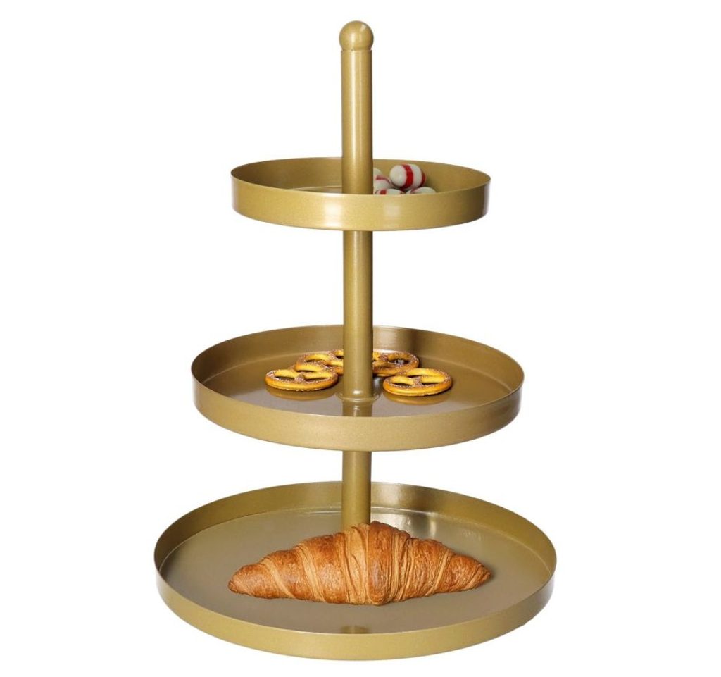 Třípatrový nerezový etažér ve zlaté barvě – elegantní stojan na dezerty a občerstvení