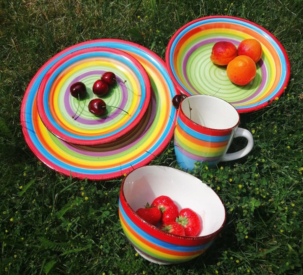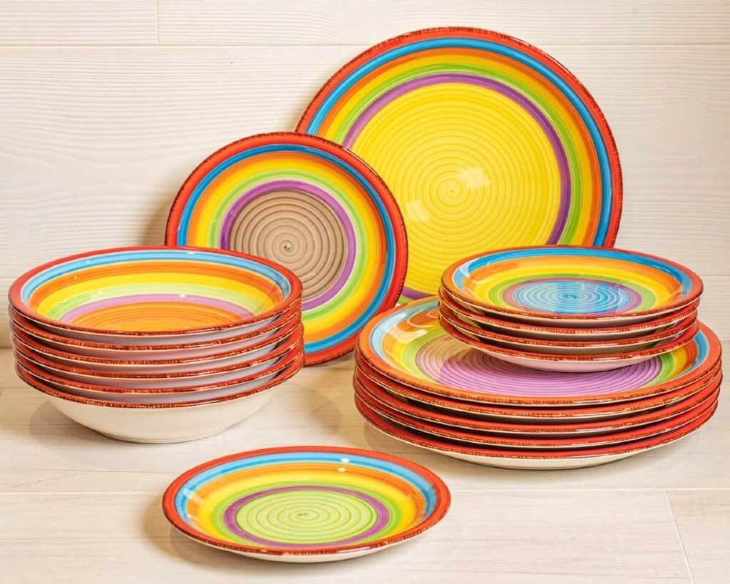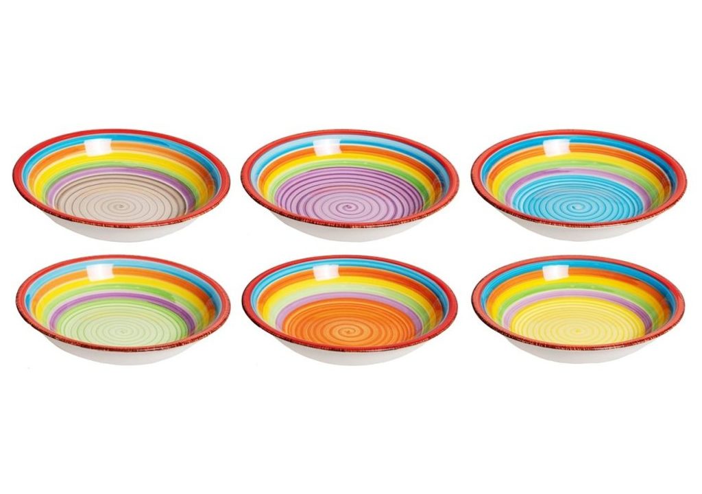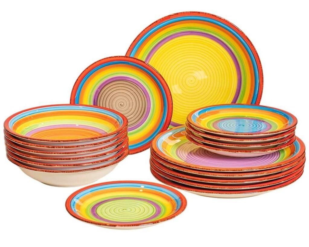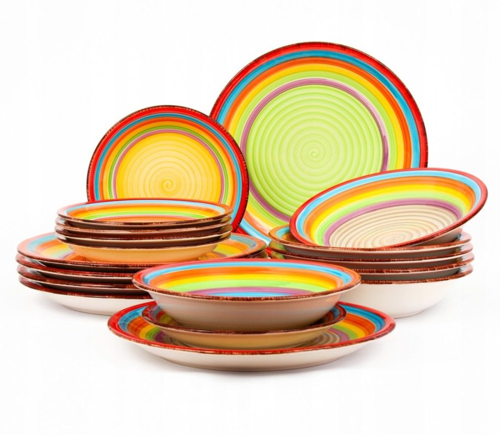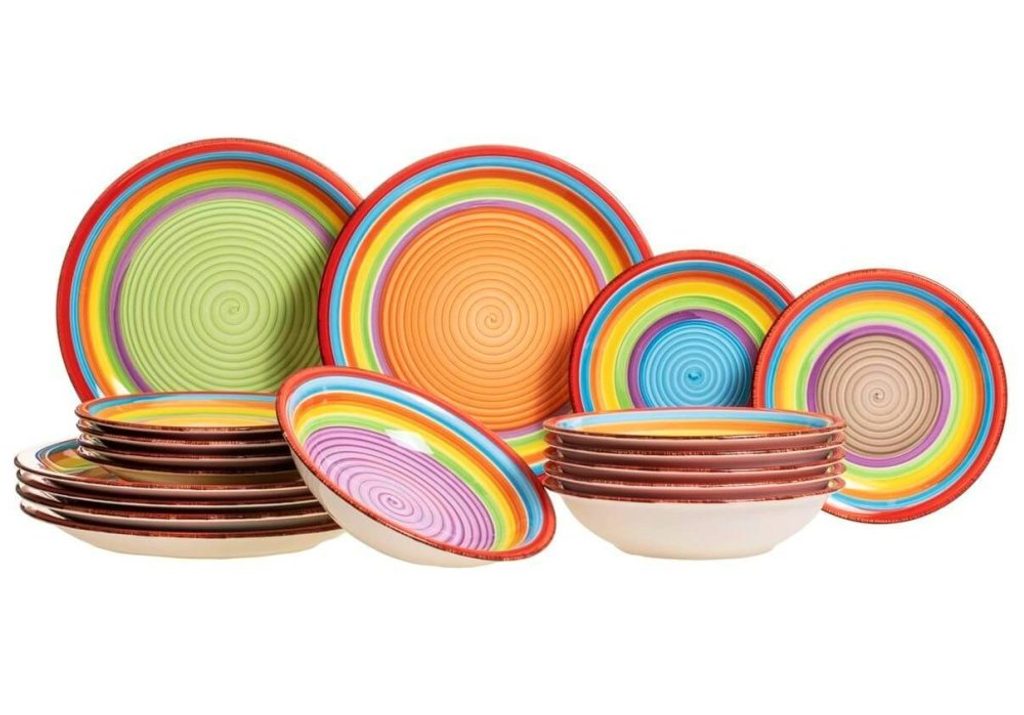 Vneste léto do svého domova s touto 18dílnou sadou nádobí model ´Ibiza´.Tato sada je vhodná pro 6 osob.Sada se skládá z:6x jídelní talíř 27 cm6x hluboký talíř 20,5 cm6x snídaňový talíř 19,5 cm